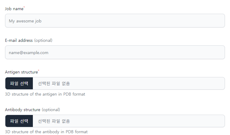 You have to provide a antigen structure in the PDB File Format. If you have an antibody construct that you want to use as a starting point, you can put it as a PDB file format.