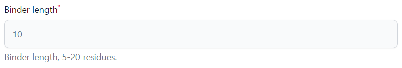 - Binder length: You have to provide the length of the peptide to be designed. The range of binder length should be 5-20 residues.